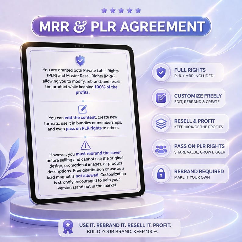 Each video is delivered in MP4 format and comes with PLR (Private Label Rights) + MRR (Master Resell Rights), giving you full freedom to: