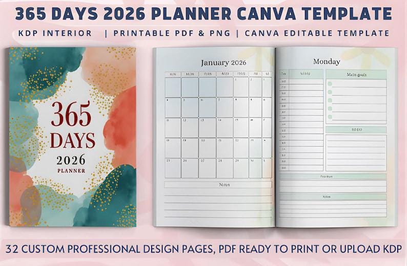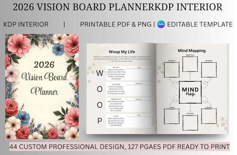 • 2026 planners (daily, weekly, family, business, marketing, vision board, agenda)