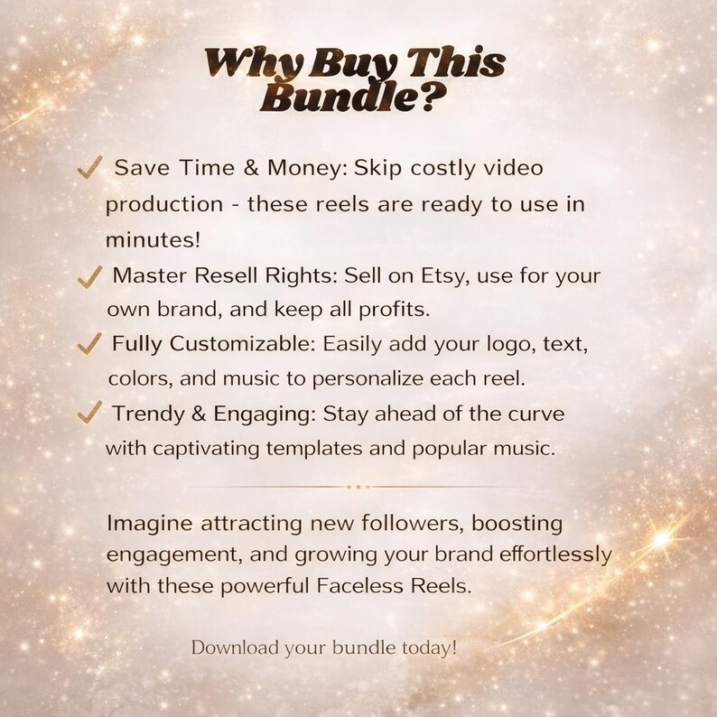 ✔️​Elevate your brand and transform your social media strategy with these beautiful, faceless digital marketing videos. Create, customize, and profit — all with this simple, ready-to-use collection.