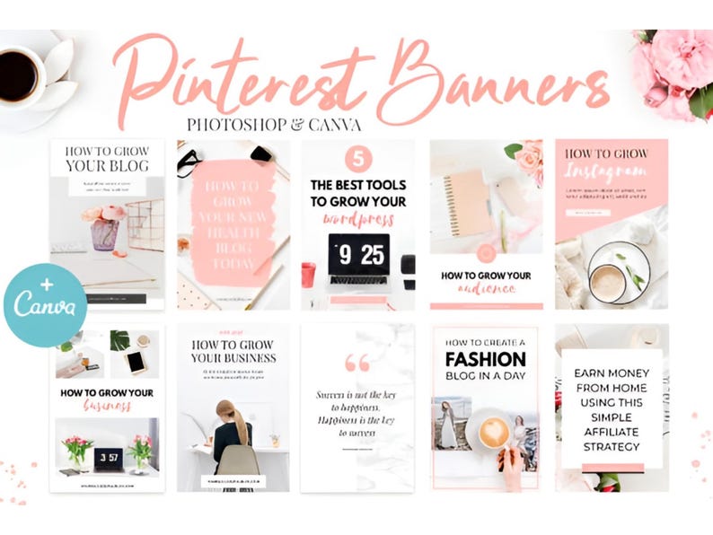 Save time and elevate your Pinterest game with these stylish, ready-to-edit templates! Perfect for bloggers, online shops, and marketers — design eye-catching pins effortlessly in Adobe Photoshop or Canva.