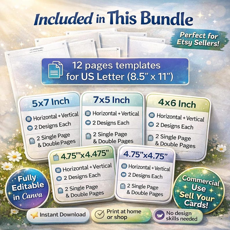 Create professional-quality greeting cards at home using this editable Canva template, perfectly sized for US Letter paper. No design skills required—just drag, drop, and customize!