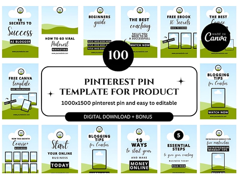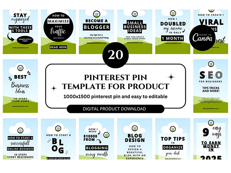 Take your Pinterest marketing to the next level with this huge template bundle! Perfect for bloggers, small business owners, Etsy sellers, and digital creators who want to grow their audience and save time creating beautiful, scroll-stopping pins.
