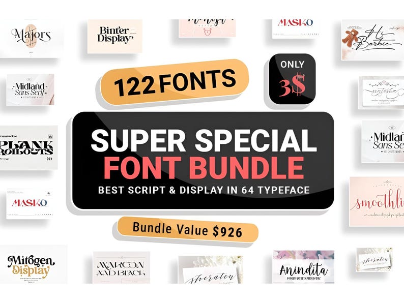 🌟 Super Special Font Bundle : 122 Fonts, 64 Typefaces!